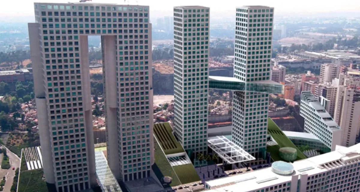El Grupo Dine en el año de 1990 presentó una licitación para realizar una edificación que reuniera algunos requerimientos técnicos, incluso poseer una figura empresarial ilustre. Los ganadores resultantes fueron los arquitectos Teodoro González de León y Carlos Tejeda. La Torre Arcos Bosques I o Torre Pantalón se empezó a construir en el año de 1993 y llegó a su término en el año de 1996. Se pretendía elaborar una edificación con una armadura realizada por medio de unas molduras firmes de hormigón blanco reforzado, se calcula que se usaron 35, 000m3, así como 20,000 toneladas de acero como complemento. Las áreas destinadas para los elevadores le dan firmeza a la edificación.