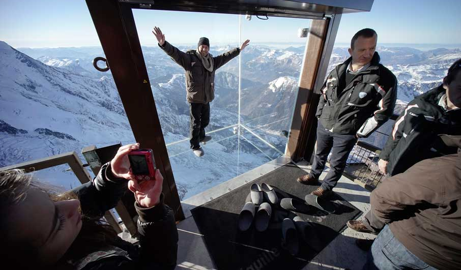 Es un atractivo turístico que fue creado en el año 2013 y su operación estuvo a cargo de la compañía Du mont-blanc, acceder al lugar no tiene costo, se cuenta con una sala y suelo de cristal. Está ubicada cerca de la terraza más alta de la Aiguille du Midi, a 3,842 metros de altura, se considera una de laa atracciones más populares de Europa.
