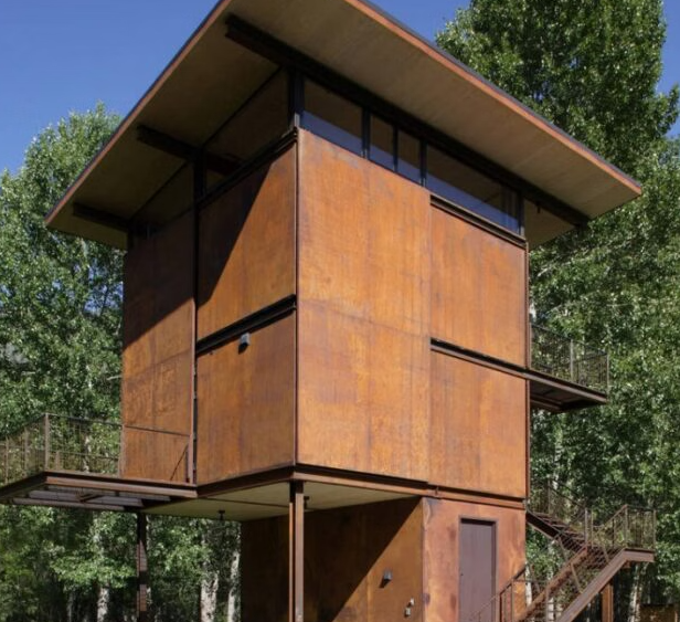 Cabaña construida en la montaña, a diferencia de lo que comúnmente se ve en las cabañas, este es un diseño único a base de acero que aporta la máxima seguridad para la construcción y para las personas que la habitan. Abarca un espacio de 200 metros cuadrados, los cuales se encuentran divididos en tres niveles.