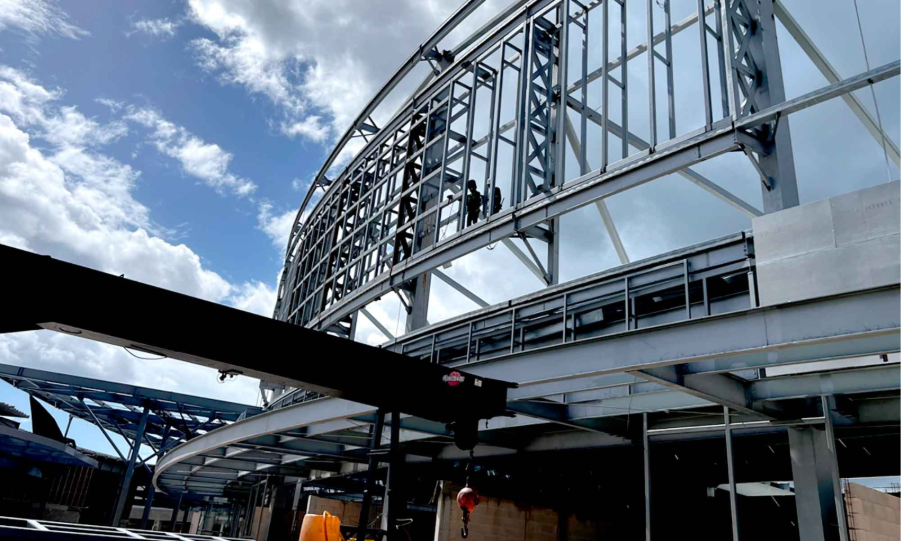 Construcción de plazas comerciales con acero.