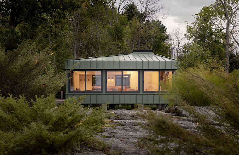 Para poder llegar a la choza verde tiene que ser por medio de una embarcación pues se encuentra cerca de un sitio rocoso, esta choza con diseño moderno sigue teniendo en su techo y fachada los colores originales, este albergue seguirá llenando de remembranzas a Robert’s Island, en Ontario, Canadá El albergue actualmente se halla en lo más, y esta circundado de maravillosas imágenes de Georgian Bay, con áreas húmedas y una periferia llena de arbustos. Se precisa que el solar es un poco difícil, se pidió que estuviera cerca del principal campamento.
