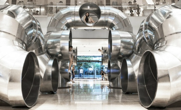 Este diseño se encuentra en el interior de los edificios, se realizó con motivo de conmemorar el 165 aniversario de los arquitectos. Lane Crawford le realizó la invitación a People´s Architecture Office para llevar a cabo la instalación que represente la vida vertical en el futuro, se inspiró en ductos de ventilación ocultos y las estructuras mecánicas que sostienen las comodidades de la vida moderna.